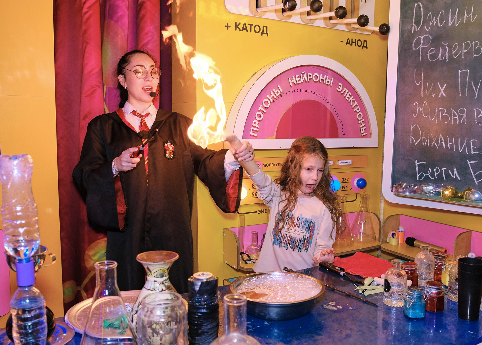 Урок-викторина по заклинаниям – в отдельной лаборатории на большом мультимедийном экране ребята выучат разные заклинания, а также разгадают смешные тематические загадки.