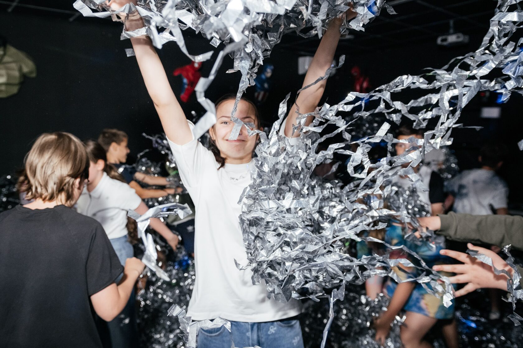 FOILSHOW - танцы в отдельном помещении под трендовую музыку с лазерами и сугробами серебряной фольги, которой дети будут закидывать друг друга